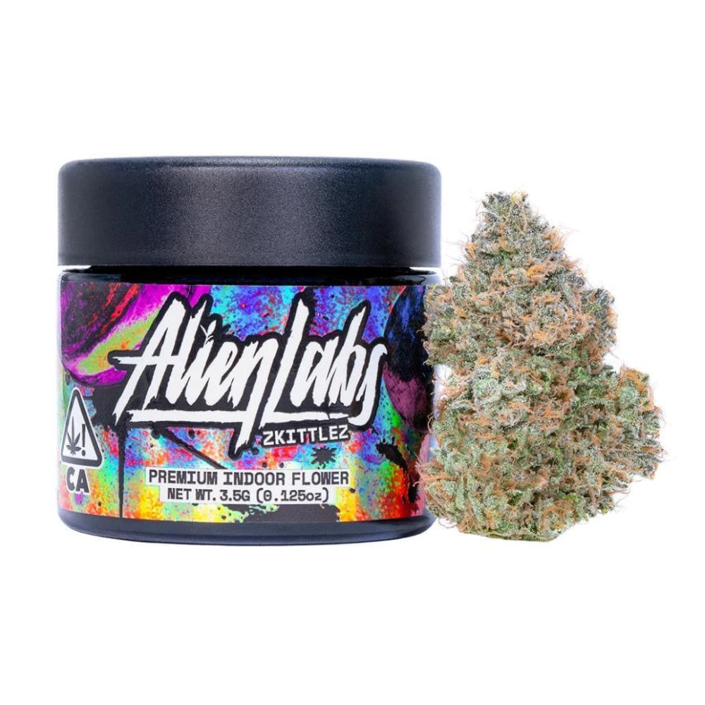 Alien Labs’ Zkittlez strain is an Indica-dominant hybrid cultivated by crossing Grape Ape and Grapefruit with an unidentified mystery strain. The chunky, sugar-coated colas of the Zkittlez strain explode with a variety of vibrant hues and emit a multifaceted aroma. Top notes of overripe berries, sour grapefruit, and fresh lime dance with heart notes of heliotrope, balsamic vinegar, and cream, creating a distinctive odor that cannabis enthusiasts crave. Zkittlez’ moderate THC levels often encourage a stoney state of heady euphoria, accompanied by a general calmness that has been known to elicit mildly numbing and sedative effects.