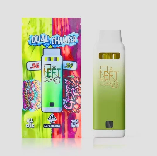 Switch the flavors. Left Coast's Dual Chamber Pen features two tanks of high-quality, strain-specific oil in one pen, allowing you to effortlessly switch hits with a simple click, aligning your terpene experience with your mood.