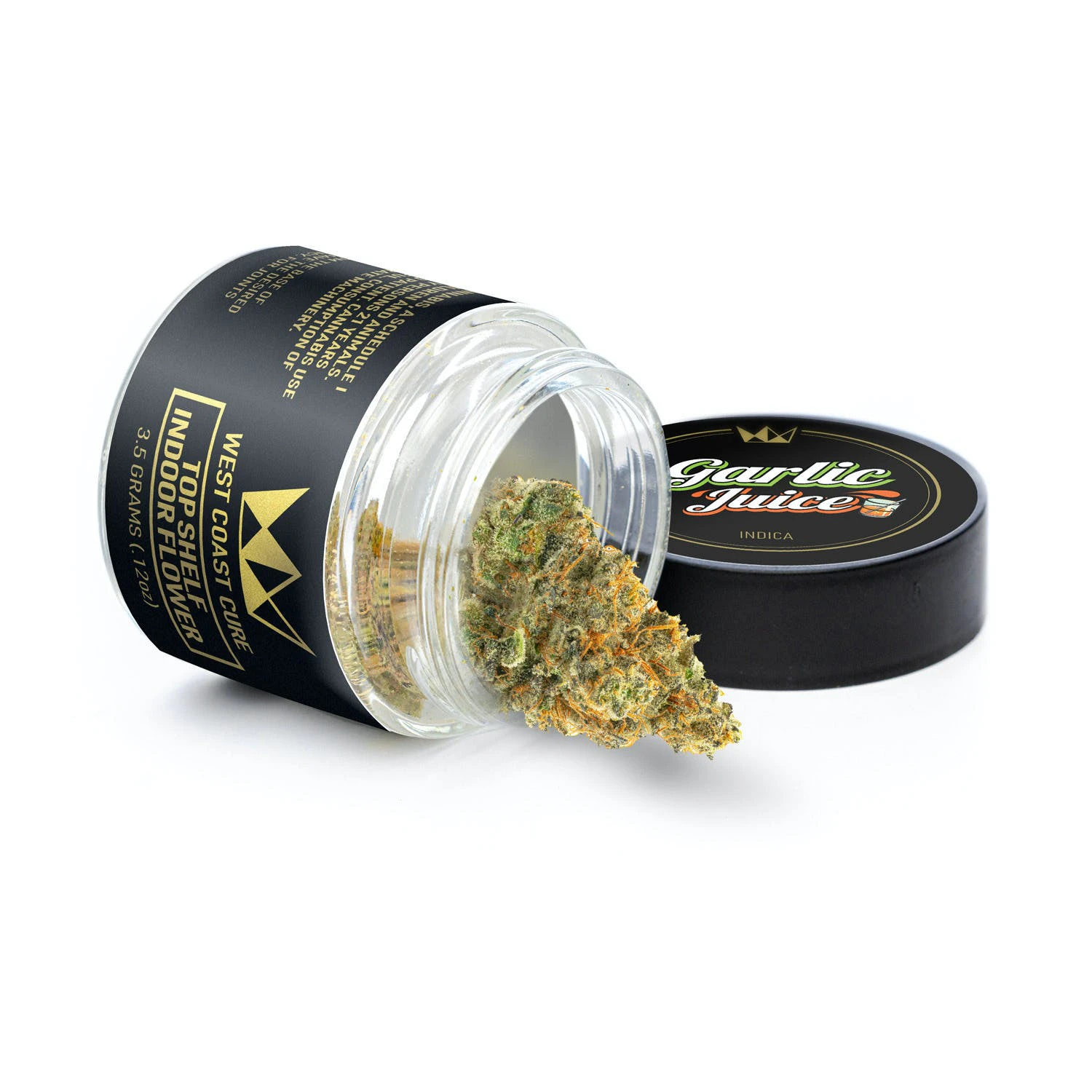 Garlic Juice by West Coast Cure is an Indica dominant hybrid flower from Oni Seed CO. An appetizing strain that crosses GMO and Papaya, this cultivar has a gassy aroma with a complex spiciness and a light pine finish. Its overall flavor profile smacks of GMO’s zesty garlic & cloves and finishes with Papaya’s sweet fruit notes. A great smoke for relaxing after work or on a lazy day off, the effects are powerful and prolonged.