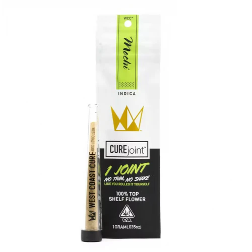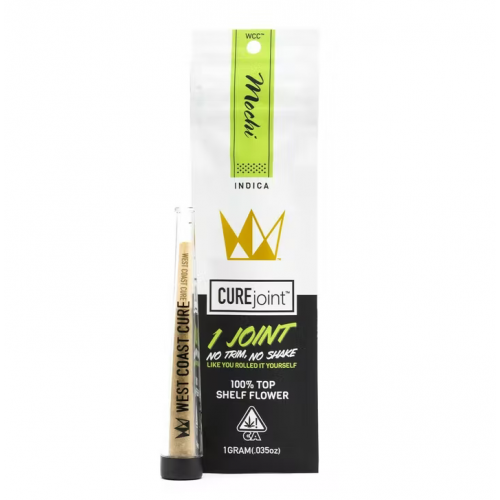Mochi Cured Joint from West Coast CureTM is an Indica forward hybrid that’s crossed two heavy hitters with deep roots in the Cookie fam’s gene pool: Sunset Sherbet and Thin Mint Cookies. Mochi was originally cultivated by Sherbinski and has a tropical nose with a big flavor profile.